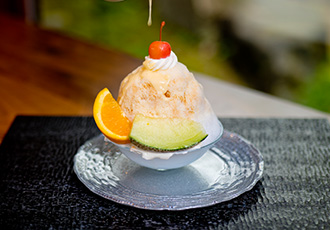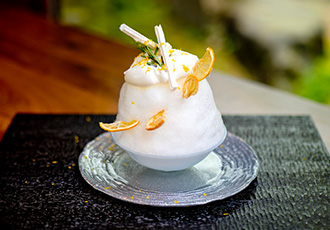 ほろ苦いゼリーと甘いクリームが織りなす大人のかき氷。