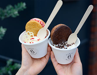 当店人気のバターサンドを特製のアイスクリームにDip On! 見た目もたのしいテイクアウトメニュー。